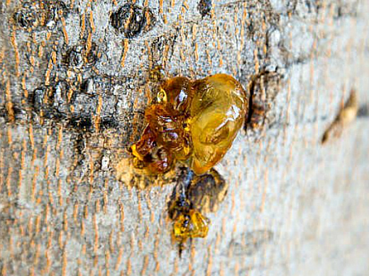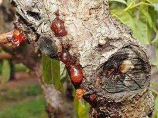 Кора трескается, и происходит вытекание густой полупрозрачной жидкости (камеди). Данная патология (камедетечение) не вызвана инфекцией, это болезненная реакция абрикоса на внешние раздражители (раны, болезни, непогоду и т. п.). Растение сигнализирует о дискомфорте.