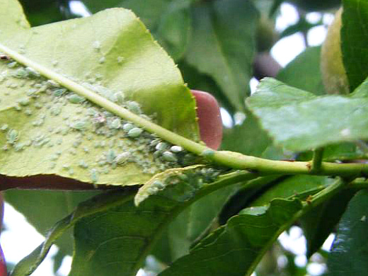 Колонии тлей уничтожаем народными средствами (настоями растений) или биопестицидами (Фитоверм, Акарин).