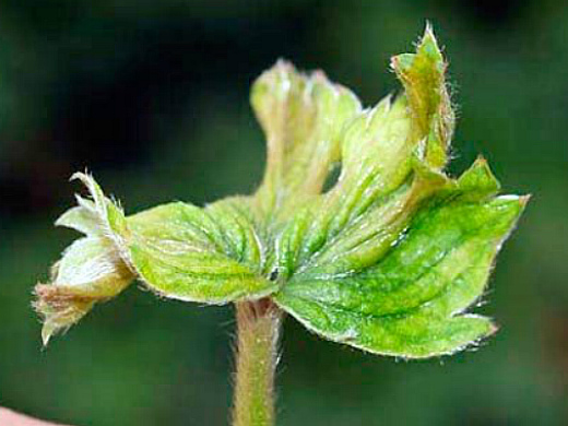 Вредитель поселяется снизу листовой пластинки. Обнаружить его вооруженным глазом практически невозможно, а вот увидеть опутанную паутиной нижнюю сторону листовой пластины не составит труда. Зараженные растения сбрасывают листву и отстают в развитии.
