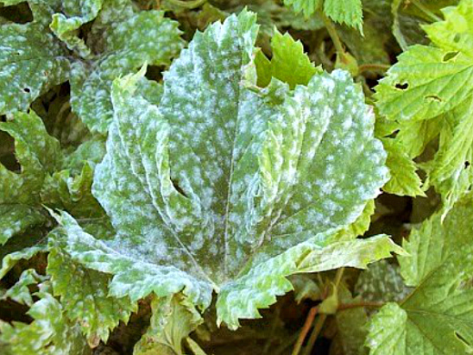 Болезнь распространяется воздушным путем. На листьях появляется бело-серый налет, похожий на муку. Ягоды клубники становятся сизыми и появляется неприятный запах плесени. Листочки скручиваются лодочкой, цветы плохо опыляются, ягоды деформируются.
