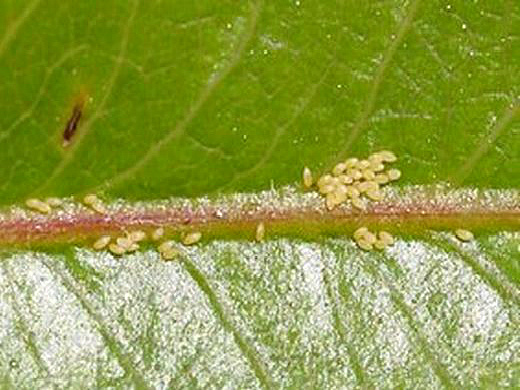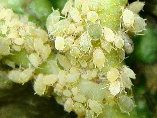 Колонии мелких салатовых насекомых высасывают соки из отрастающих верхушечных побегов и листьев облепихи. Они губят молодую листву растений и ослабляют однолетний прирост, что отрицательно сказывается на развитии всего куста и его плодоношении. Эти вредители обычно появляются на участках уже в начале лета (иногда раньше), но не сразу заметны благодаря своей защитной окраске. Липкие выделения тлей иногда заселяет сажистый грибок, отчего концы ветвей чернеют. Вредитель массово расплождается, если влажно и тепло.