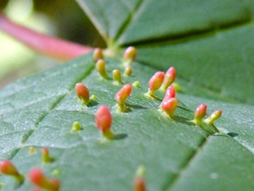 Очень маленькие белые клещики, видимые только в сильную лупу, перезимовывают возле почек. Весь сезон они питаются соком листочков, которые при этом деформируются и покрываются плоскими вздутиями (галлами). При сильном повреждении идёт ранний листопад, ослабляющий кусты.