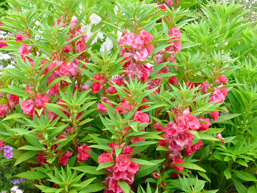 Цветовая гамма бальзамина не очень широка: оранжевый, красный и розовый оттенки, их диаметр — 5 см. Семена растения вызревают в коробочке, «взрывающейся» от любого касания (отсюда и народное название). Бальзамин очень любит тепло, потому саженцы в грунт можно рассаживать только в конце мая.