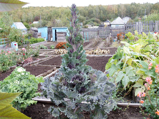 Вообще, эти осенние растения в саду — двухлетки, однако, выращивают их, как однолетки. В начале сентября брассика (другое название декоративной капусты) достигает пика своего роста.