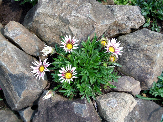 Светолюбивое низкорослое (25 см), долгоживущее растение, однако выращивают гацанию (газанию) как однолетник. Обладает линейными листьями и корзинками-соцветиями средних размеров (7 см), лепестки язычковой формы, различные по цветовой гамме. Как правило, большинство сортов гацании раскрывают соцветия только в дневное время, когда есть солнце. Цветёт весь сезон.