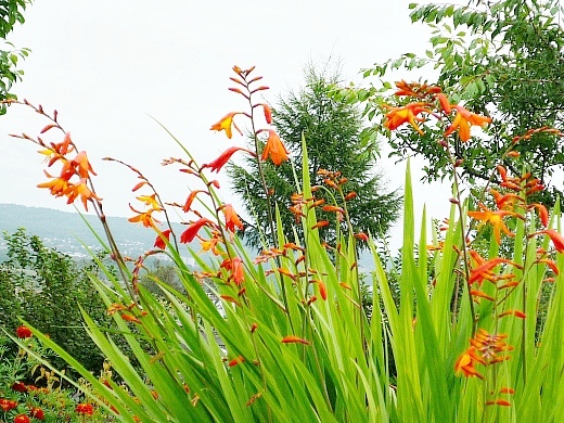 Это многолетнее клубнелуковичное красивоцветущее растение. Прекрасно себя чувствует на многих почвах, любит свет, нуждается в умеренном увлажнении. Цвести крокосмия (она же — монтбреция или японский гладиолус) в саду начинает в июле, заканчивает — в конце августа.