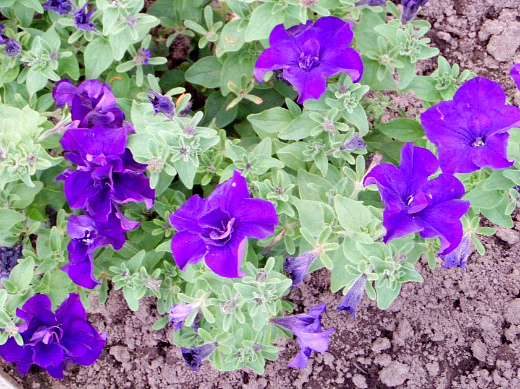 Цветы петунии одиночные, сидящие на небольших цветоножках в пазухах листвы. У них двойной околоцветник, пятираздельная чашечка, чашелистики которой срослись у своего основания. Цветет петуния весь сезон при благоприятных условиях.