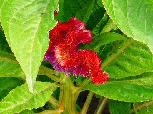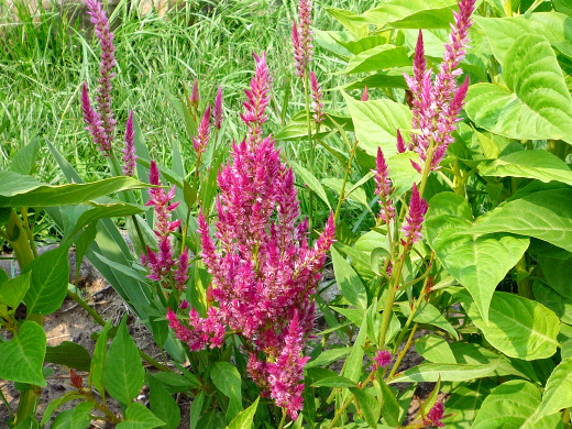 Целозия гребенчатая имеет сросшиеся побеги, а её соцветия похожи на гребень петуха. Сорта этого растения бывают низкорослыми — около 30 см. и высокорослыми — около метра высотой. Все сорта целозии в саду на участке размножаются семенами. В грунт растения высаживаются в начале лета, расстояние между росточками от 20 см.