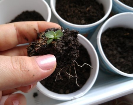 Визуально первые месяцы не видно, что всходы эустомы растут, в этот период под землей развивается корневая система. Когда у растений образуются первые две пары настоящих листьев, их можно отличить по сизо-голубому оттенку, примерно через 2 месяца сеянцы эустомы пикируют из плошек в отдельные горшочки. При пересадке вынимайте растения с комом земли, вы увидите, что у маленьких растений под землей образовались многочисленные мелкие корешки.