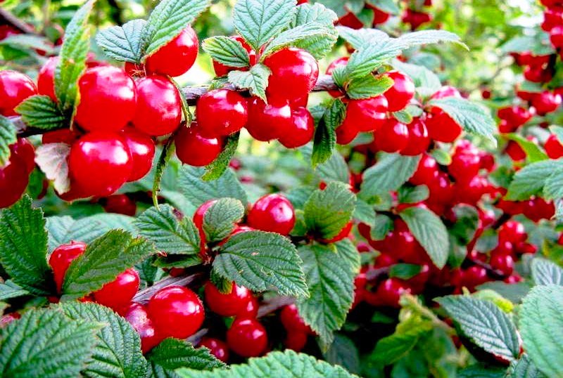 Плоды шарлахово-красные, слегка прозрачные, покрыты легком сероватым опушением, редеющим по мере созревания, кисло-сладкие без горчины, менее сочные, чем у вишни обыкновенной, но более сочные, чем у большинства прочих культурных видов вишни.