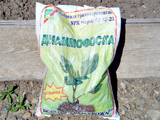 - В каждую посадочную лунку кладём: стакан перегноя (компоста), полстакана золы, 1 ч. л. комплексного минерального удобрения.