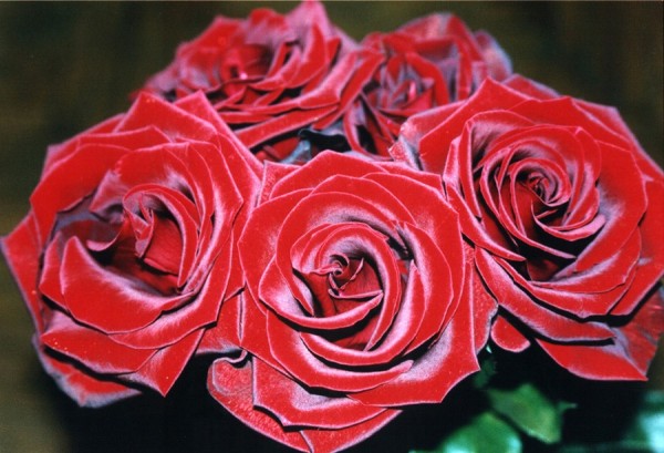 Бархатистые лепестки у сортов Schwarze Madonna темно-красной окраски; Eddy Mitchell — бордово-красные, нижняя сторона лепестков золотисто-кремовая; Erotika темно-красные, Prince Jardinier — бело-розовые с розовым центром, нижняя сторона лепестков бело-кремовая; Black Baccara — темно-бордовые, почти черные; Papa Meilland пурпурные с синеватым отливом.