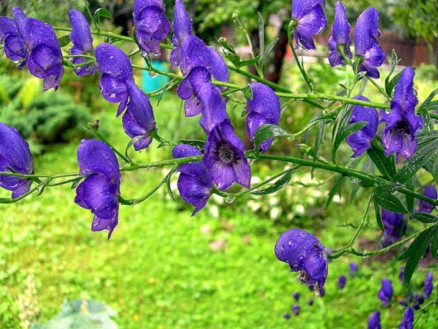 Аконит, или борец, клубочковый наиболее распространен в культуре. Это многолетник высотой 70-100 см. Клубни, давшие цветоносный побег, осенью отмирают вместе со стеблями и корнями. Дочерние почки возобновления, которые развиваются на нижней части однолетнего стебля и образуют к этому времени корпи и розетки листьев, становятся изолированными. Лисгья у аконита темные, плотные. Цветки до 4 см в длину, неправильные, с крупным шлемом, фиолетовые, реже белые. Есть садовые двухцветные (фиолетово-белые) формы. Цветет с июля по сентябрь. Морозостоек, к почве нетребователен. Выносит затенение. Размножают семенами или клубнями весной или осенью, рассаживая клубни каждые 3 года. Внимание! Растение ядовито.