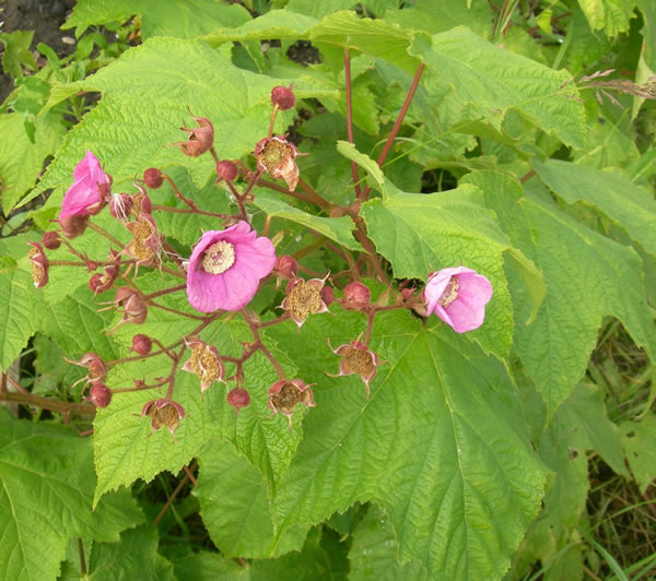 Для оформления участка часто рекомендуют использовать малину душистую, или машноклен, — листопадный кустарник высотой до 1,5 м с крупными, до 20 см в длину, листьями. В течение всего лета кустарник украшают розово-пурпуровые цветки : приятным ароматом. Цветет и плодоносит с 6 лет. Плоды в диаметре до 1 см, съедобные.