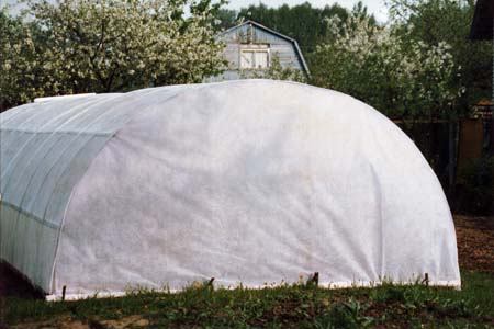 Лутрасил — укрывной нетканый материал — производят в Германии. Он не намокает. Светопроницаемость у него выше, чем у полиэтиленовой пленки. Бывает различной плотности.