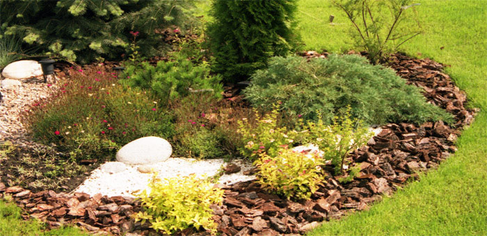 Края углубления выравнивают, дно осторожно рыхлят, не повреждая корней. В рыхлую почву дна заделывают комплексные минеральные удобрения. Затем подготовленную почву выравнивают, слегка уплотняют и осторожно, не размывая, поливают. После этого раскладывают ровным слоем мульчу.