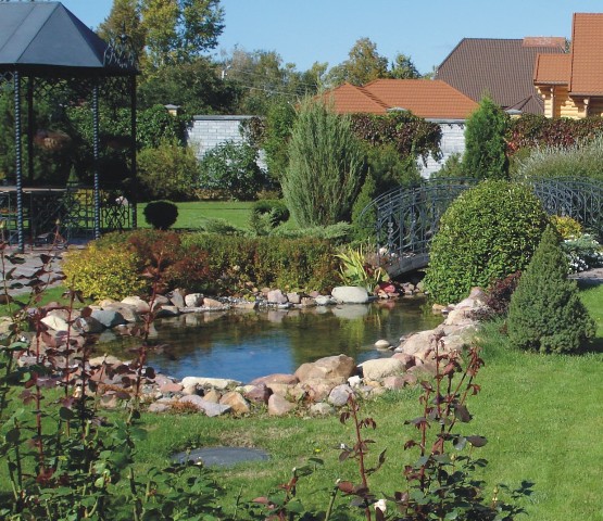 Большой водоем на замкнутой территории оптически уменьшает пространство, хотя и добавляет ему глубину. Маленький прудик на открытой лужайке может из задуманного акцента превратиться в смешную «заплатку».