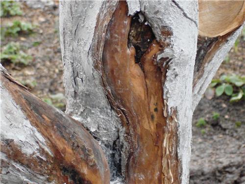 В конце зимы, когда наступают достаточно теплые солнечные дни, а ночи еще морозные, при значительных перепадах дневных и ночных температур, на деревьях могут появиться солнечные, или солнечно-морозные, ожоги. Они проявляются в виде темных пятен разной формы величины на многолетних ветвях и штамбе с южной и юго-западной стороны. В дальнейшем кора начинает растрескиваться и шелушиться, а затем отмирает.