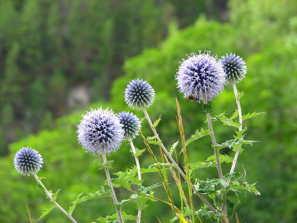 Может быть, вам понравится мордовник обыкновенный — выносливый многолетник с мощной корневой системой. Все наземные части растения колючие. Стебель прямой, жесткий, ребристый, высотой до 150 см, иногда опушенный. Листья перистораздельные, снизу бело-войлочные. Цветки мелкие, голубые или синеватые, собраны в шаровидные либо продолговатые головчатые соцветии диаметром 3-5 см. Листочки обертки без железистых волосков. Цветет с июня до конца июля.