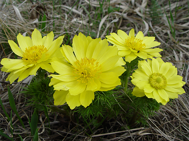 У адониса сибирского цветки желтые, до 6 см в диаметре, в пасмурные дни и на ночь укрываются. Листья с нитевидными лопастями в розетке. Раноцветущий. Почвы предпочитает легкие, богатые органикой, перекопанные на глубину 20 см с добавлением извести.