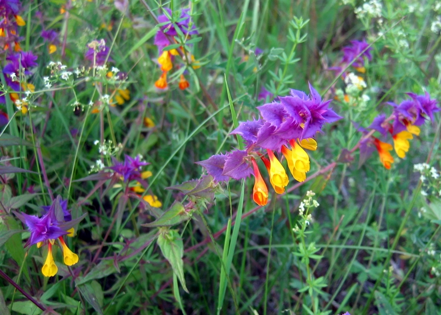 На кислых почвах растут вереск, иван-да-марья, лютик, мокрица, подорожник, хвощ полевой, а на нейтральных и слабокислых — клевер, крапива, лебеда, мать-и-мачеха, пырей ползучий, ромашка непахучая.