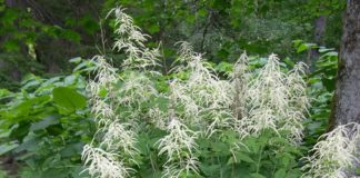 Волжанка азиатская достигает высоты человеческого роста, а то и больше. Цветки густо покрывают высокое метельчатое соцветие, а сложные листья длиной д...