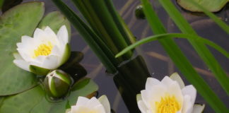 Нимфеи не терпят брызг фонтана. Его струи не должны попадать на цветки.