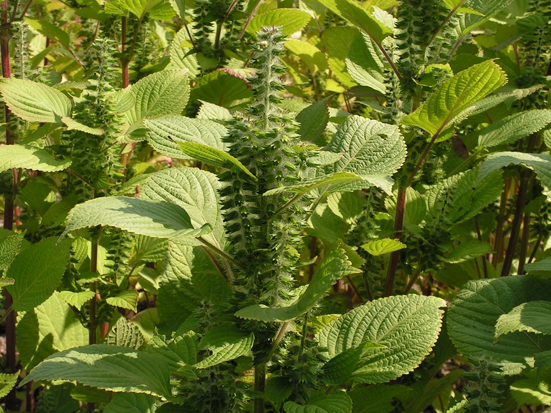 В средней полосе перилла — ценное однолетнее пищевое, лекарственное и декоративное растение. Перилла кустарниковая пурпурная имеет темно-бордовые с бронзовым оттенком по краю листья, которые востребованы при приготовлении блюд японской кухни и в китайской медицине. Аромат листьев представляет собой смесь запахов тмина и мускатного ореха с привкусом изюма, прекрасно подходит к жареным блюдам. Перилла кустарниковая кудрявая с зелеными листьями имеет вкус тмина с нотами аниса и корицы.