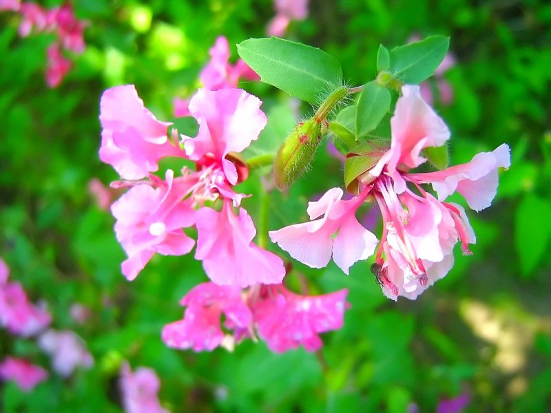 У кларкии изящной, или ноготковой, цветки расположены в пазухах листьев, цветение сопровождается отрастанием побега и закладкой все новых и новых цветочных почек. Центральный побег доминирует над боковыми и сильно удлиняется, на его конце цветение продолжается, а у основания семена уже созрели.