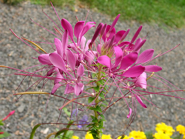 Клеома колючая достигает в высоту 100 см и более, поэтому ее высаживают на заднем плане цветника либо в группах рядом с крупными растениями — девясилом, дельфиниумом, клещевиной, кукурузой декоративной.