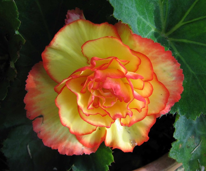 Бегонию клубневую выкапывают после сильного заморозка, когда замерзнет основная масса цветков и листьев. Стебель обламывают у основания. Клубни выкапывают вместе с корнями и, не счищая почву, укладывают в ящики в один ряд. Делать все это желательно в сухую погоду. Затем клубни заносят в сухое, проветриваемое помещение, где просушивают в течение месяца.