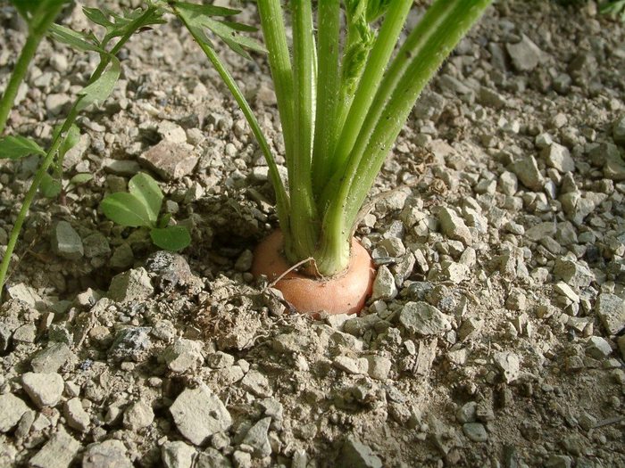 После заключительного окучивания корнеплоды должны быть покрыты слоем земли на высоту около 5 см.