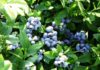 Синяя птица. Сорт считается одним из лучших по совокупности качеств. Куст среднерослый, крона компактная. Сорт с ароматными кисло-сладкими ягодами, средняя масса плода 0,9 г.
